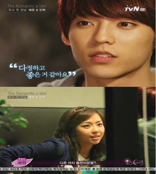 비투비 민혁은 6일 방송된 tvN '더로맨틱&아이돌'에서 쥬얼리 예원과 첫만남에 앞서 속내를 털어놨다.