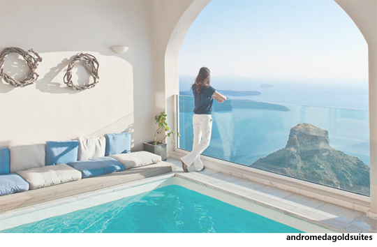 공개된 사진 속 '절벽 위 호텔 풀장'은 시원하게 펼쳐진 바다를 보면서 수영할 수 있다는 것이 장점이다. 특히 높은 절벽 위에 위치하고 있는 골든 스위트 호텔은 스위밍 풀에서 에게해의 풍경과 석양도 즐길 수 있어 관심을 끈다.