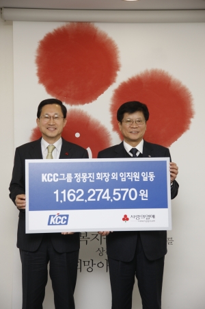 KCC 송기범 관리본부장은 “경제위기의 여파로 도움의 사각지대에 놓인 어려운 가정을 돕기 위해 임직원과 뜻을 합쳐 성금을 기부하게 됐다”며 “앞으로도 지역사회와 함께하는 따뜻한 기업으로서 적극적인 이웃 사랑을 실천해 나갈 것”이라고 전했다.