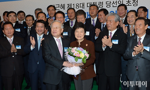 [포토]박근혜 대통령 당선인, '상공인 대표단과 함께'