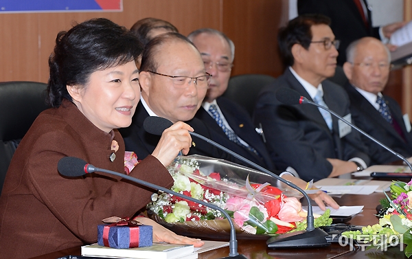 박근혜 대통령 당선인이 9일 서울 효창동 대한노인회를 방문해 인사말을 하고 있다. 인수위사진기자단