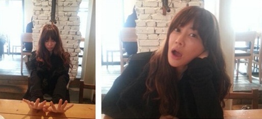 사진 속에는 양미라가 카페로 보이는 곳에서 블랙 코트에 화장 끼 없는 자연스러운 모습으로 장난기 넘치는 포즈를 취해 보이고 있다.