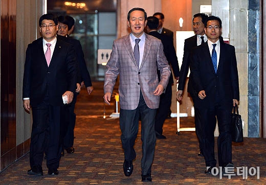 허창수 전경련 회장이 10일 오후 서울 중구 소공동 롯데호텔에서 열린 전경련 회장단 회의에 참석하기 위해 회의장으로 들어서고 있다.