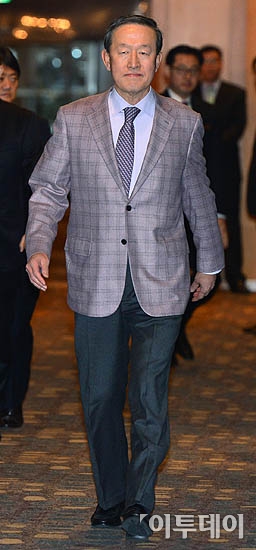 허창수 전경련 회장이 10일 오후 서울 중구 소공동 롯데호텔에서 열린 전경련 회장단 회의에 참석하기 위해 회의장으로 들어서고 있다.
