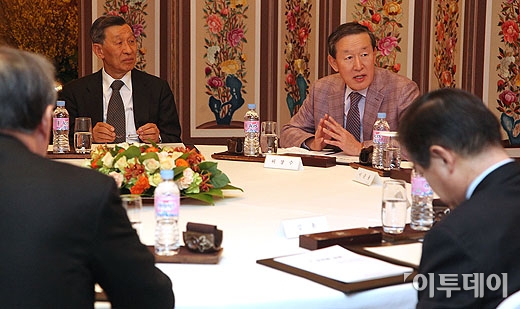 전경련은 허창수 전경련 회장, 김윤 삼양 회장, 류진 풍산 회장, 정병철 상근부회장 등 9명이 참석한 가운데 2013년도 첫 번째 회장단회의를 개최했다. 회장단은 경기가 어려울수록 적극적인 투자에 나서 줄 것을 강조했다.(전경련 제공)