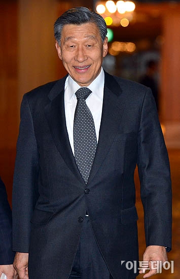 박영주 이건산업 회장이 10일 오후 서울 중구 소공동 롯데호텔에서 열린 전경련 회장단 회의에 참석하기 위해 회의장으로 들어서고 있다.