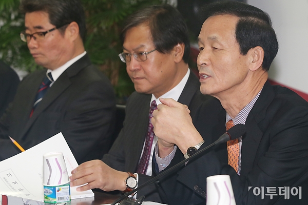 김장수 외교통일분과 간사가 11일 오전 서울 종로구 삼청동 한국금융연수원 내 마련된 인수위 회의실에서 열린 외교국방통일분과 국방부 업무보고에서 인사말을 하고 있다. 인수위는 국방부를 시작으로 중소기업청, 보건복지부, 환경부, 문화재청, 기상청 등의 업무보고를 받는다. 인수위사진기자단