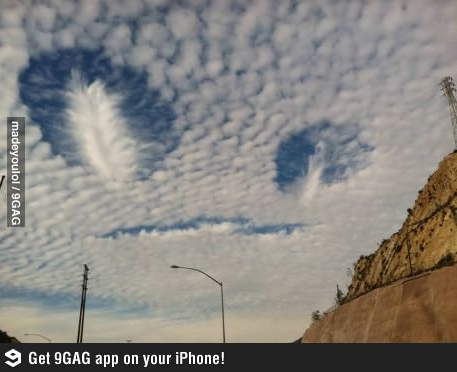 사진 속에서 특정한 형태로 밀집된 구름은 화를 내고 있는 사람의 표정처럼 보인다. 부리부리한 눈매와 화난 입모양은 보는 이들의 시선을 사로잡는다.