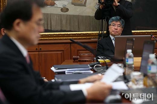 김중수 한국은행 총재가 11일 오전 서울 중구 한국은행 본관에서 열린 금융통화위원회 본회의에서 생각에 잠겨 있다.