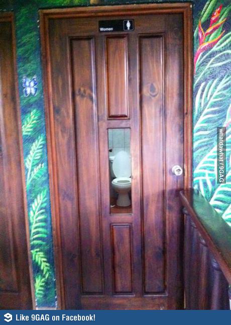 사진 속 여자 화장실은 문 가운데 창문이 있어 그 창문 넘어로 변기가 적나라하게 보인다. 특히 남자들은 뒤 돌아서 소변을 보면 되지만, 여자들은 앉아서 볼일을 보기 때문에 보는 이들을 경악케 했다.