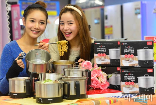 롯데마트가 13일 잠실점 디지털파크에서 싱글족들을 위한 신일 무선전기 라면포트(1000㎖)를 33% 가량 할인한 2만4천원에 선보이고 있다.