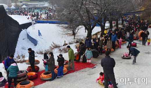[포토]눈썰매장 앞에 늘어선 줄