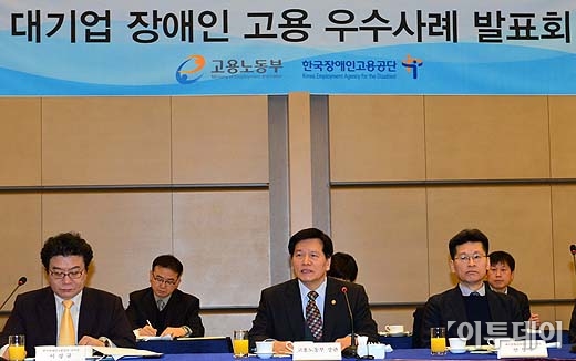 이채필 고용노동부 장관이 14일 오전 서울 서초구 반포동 팔래스호텔에서 열린 '대기업 장애인 고용 우수사례 발표회'에 참석해 인사말을 하고 있다.