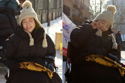 사진 속 박신혜는 야외촬영 중 의자에 앉아 눈을 감고 손으로 브이를 그리고 있다. 추운 날씨 속 박신혜는 두꺼운 점퍼와 털모자를 착용했지만 귀여운 모습은 감출 수 없었다.