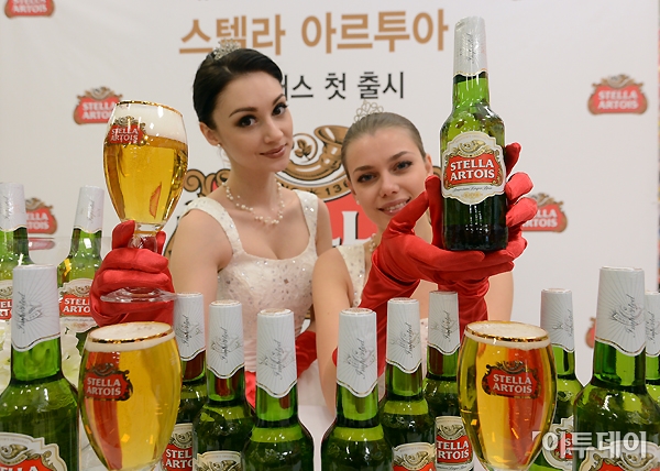 유럽 최고의 프리미엄 맥주 ‘스텔라 아르투아’가 15일 오전 동대문구 용두동 홈플러스 동대문점에서 가정용 제품 출시 행사를 가졌다. 스텔라 아르투아는 세계 최고의 체코산 사즈(Saaz) 아로마 홉을 주원료로 사용하고 있으며 파인애플의 미묘한 과일향이 더해져 맛고 향이 뛰어나다.