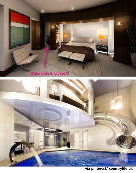 '수영장 딸린 침실' 사진 속에는 침실 바로 아래에 수영장이 달려 있다. 언뜻 보기엔 특이한 사항은 없지만 옷장 문을 열고 워터 슬라이드로 몸을 던지면 바로 수영장으로 연결된다. 잠을 자다가 수영을 하고 싶으면 단 3초 만에 뜻을 이룰 수 있어 시선을 끈다.