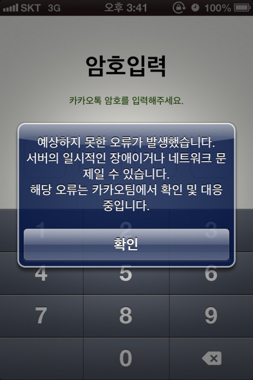 이같은 카카오톡의 일시 장애 현상은 4시10분께 해결됐다.