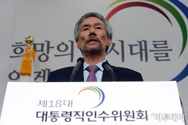 제18대 대통령직인수위원회가 15일 오후 미래창조과학부 신설을 골자로 하는 정부조직 개편안을 발표했다. 유민봉 대통령직인수위원회 총괄간사가 삼청동 인수위원회 공동기자회견장에서 취재진의 질문에 답하고 있다.