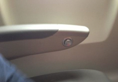 공개된 사진에는 한 비행기 좌석 팔걸이의 모습이 담겨 있다.