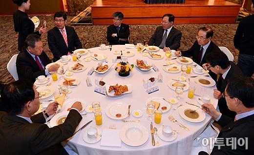 [포토]금융경영인들과 대화 나누는 김중수 총재