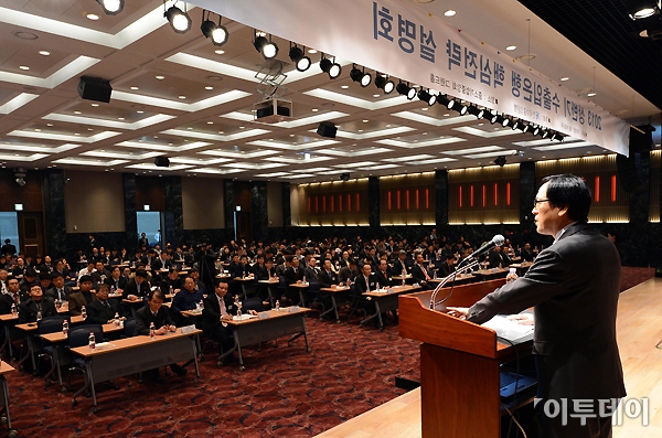 김용환 수출입은행장이 16일 오후 여의도 중소기업중앙회에서 열린 ‘2013 상반기 수출입은행 핵심전략 설명회’에 참석해 환영사를 하고 있다.