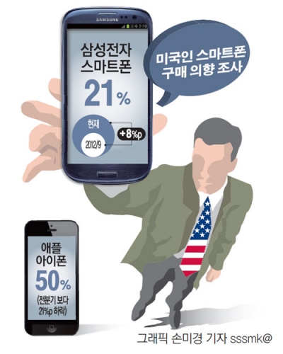 삼성전자의 스마트폰을 선택한 비율은 전분기의 13%보다 8%포인트 높아진 것으로 사상 최고 수준이다.