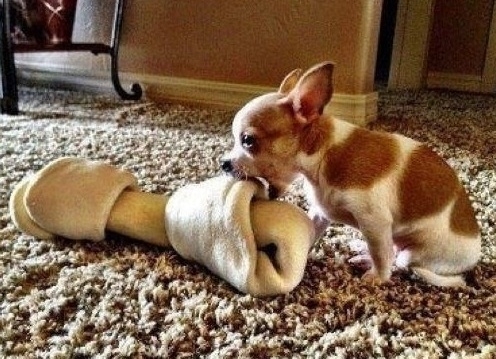 최근 온라인 커뮤니티 게시판에는 '나에게 너무 큰 간식'이라는 제목의 사진이 공개됐다.공개된 사진에는 조그만 강아지가 자신의 몸집보다 훨씬 큰 개 껌을 입으로 물려고 애쓰고 있다.욕심내는 강아지의 모습이 웃음을 자아낸다.