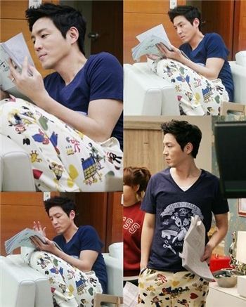 사진 속 최원영은 동물 캐릭터가 그려진 흰색 바지에 편안한 티셔츠 차림으로 대본연습에 한창이다. 특히 최원영이 맡은 극 중 역할은 귀여운 마마보이인 ‘김철규’ 역으로 의상과 완벽하게 매치된다