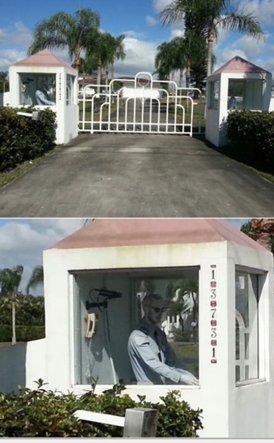 알고 보니 사진 속 경비원은 마네킹. 때문에 아무리 벨을 눌러도 반응하지 않았던 것.