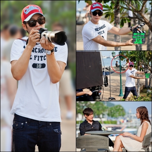 공개된 사진에는 엄태웅이 태국에서 촬영을 하는 곳에 스태프로 위장한 주원의 모습이 담겨 있다.