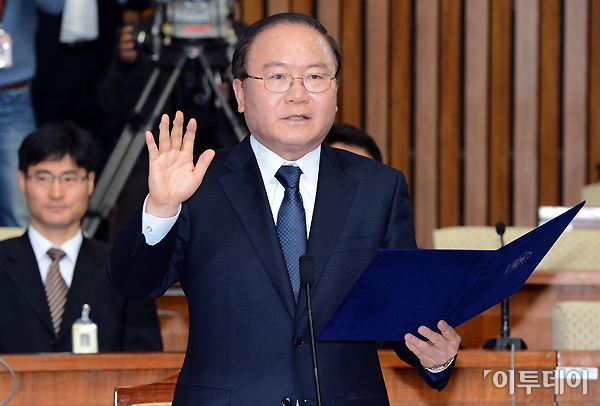 이동흡 헌법재판소장 후보자가 21일 오전 여의도 국회에서 열린 임명동의안 심사를 위한 인사청문회에 참석해 선서를 하고 있다.