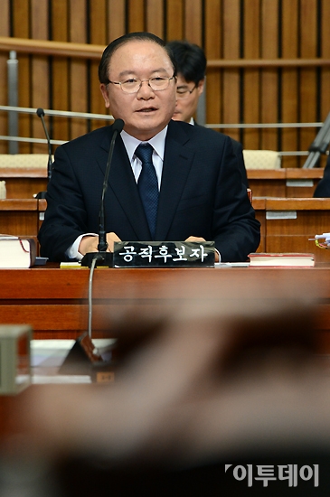 이동흡 헌법재판소장 후보자가 21일 오전 여의도 국회에서 열린 임명동의안 심사를 위한 인사청문회에 참석해 의원들의 질의에 답변하고 있다. 노진환 기자 myfixer@
