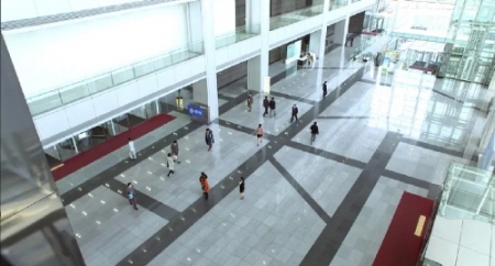 ▲SBS 드람 '야왕'의 주인공 주다해(수애)와 백도훈(정윤호)이 첫 만남을 가지는 포스코건설 송도사옥 로비. (포스코건설 제공)