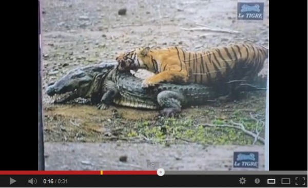 21일 오후 8시20분 현재 3428만회 이상 조회된 ‘호랑이가 악어를 죽이다(Tiger kills Crocodile)’라는 제목의 동영상에는 호랑이가 악어의 목을 물고 늘어지고 있는 모습이 담겨 있다.