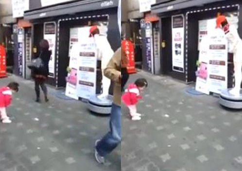 ‘정말 예의 바른 아기’는 귀여운 여자아기의 모습을 촬영한 것으로, 아기는 한 휴대폰 매장 앞에 설치된 마네킹에게 인사를 하고 있는 모습이 담겨있다.