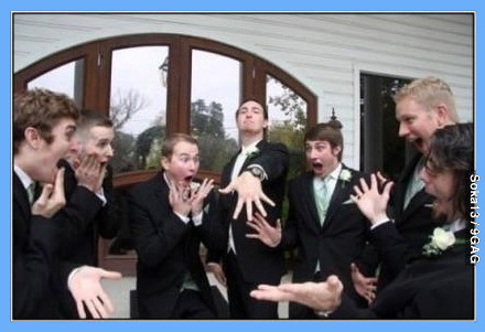 사진 속에는 신랑을 중심으로 기념사진을 촬영하는 남자들의 모습이 담겨있다. 장난을 치는 남자들의 모습에서 진한 우정이 느껴진다.