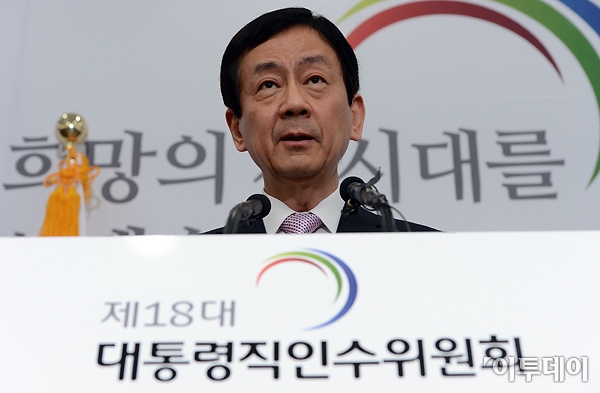 진영 인수위 부위원장(오른쪽)이 22일 오후 삼청동 대통령직인수위원회 공동기자회견장에서 정부 조직개편 후속조치를 발표하고 있다. 노진환 기자 myfixer@