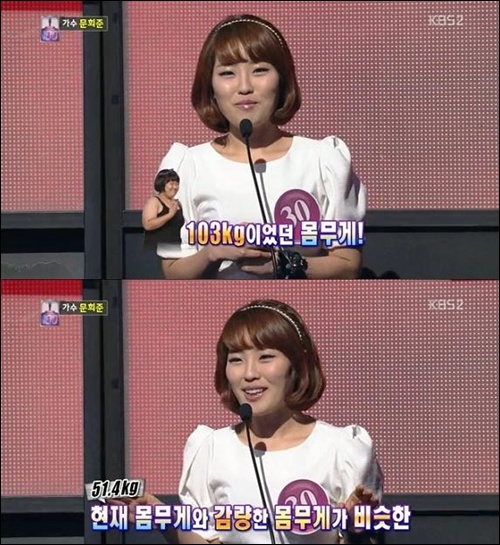 이날 방송에서 권미진은 "몸무게가 가장 많이 나갔을 때는 103kg이었다"며 "지금은 51.4kg으로 현재 몸무게와 감량한 몸무게가 비슷하다"고 밝혔다.