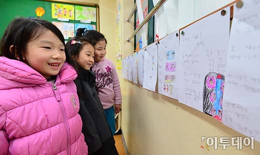 2013학년도 초등학교 취학아동 예비소집일인 23일 서울 종로구 경운동 교동초등학교에서 예비초등학생들이 교실을 둘러보고 있다. 서울시 교육청에 따르면 저출산과 도심 공동화 현상으로 서울에서 신입생이 50명 미만인 초등학교가 35곳에 이르는 것으로 나타났으며 서울 교동초등학교는 올해 15명이 입학하여 서울에서 신입생이 가장 적은 학교가 되었다.