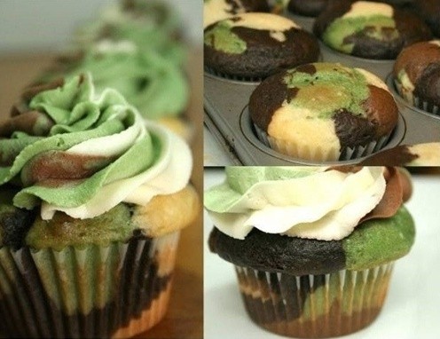공개된 사진 속에는 일명 국방색이라고 불리는 얼룩무늬 색상의 컵케이크 모습이 담겨 있다. 특히 컵케이크 빵 부분과 위에 올라간 크림이 녹색 검은색 갈색 흰색을 섞어 만들어 마치 군복의 패턴을 연상시킨다.