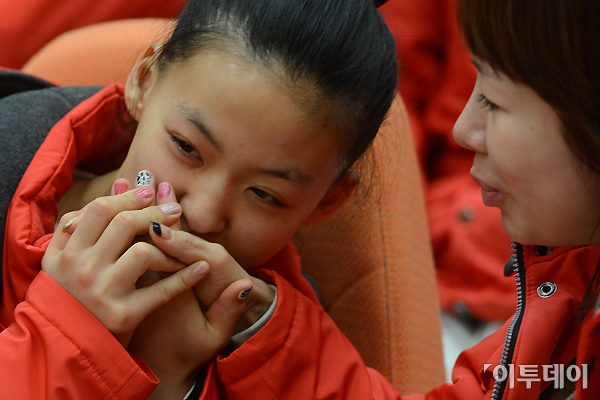 2013 평창 동계 스페셜올림픽 세계대회 한국대표선수단 출정식이 24일 오후 용산구 국립중앙박물관에서 열렸다. 출정식에 참석한 피겨스케이팅 대표 선수와 코치가 함께 이야기를 나누고 있다. 노진환 기자 myfixer@