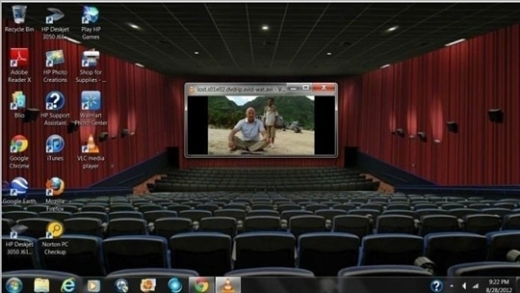 이미지를 공개한 네티즌은 영화관 좌석 뒤쪽에서 바라본 이미지를 바탕화면으로 사용하고 영상 플레이어의 크기를 영화 스크린 사이즈에 맞게 조절해 영화관 이미지를 나름대로 구현했다.