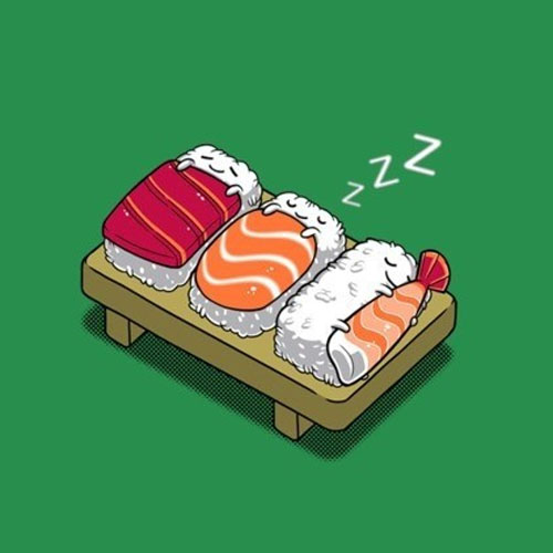 초밥들은 각각 참치ㆍ연어ㆍ새우 초밥으로 마치 이불을 덮고 자는 모습으로 그려져 있어 웃음을 자아낸다.