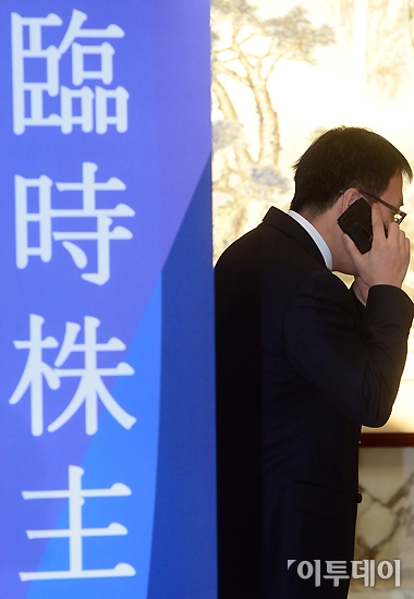 동아제약이 지주사 전환을 결정하는 임시주주총회를 개최한다. 28일 오전 동대문구 용신동 동아제약에서 임시주주총회를 앞두고 관계자가 누군가와 통화를 하고 있다. 노진환 기자 myfixer@
