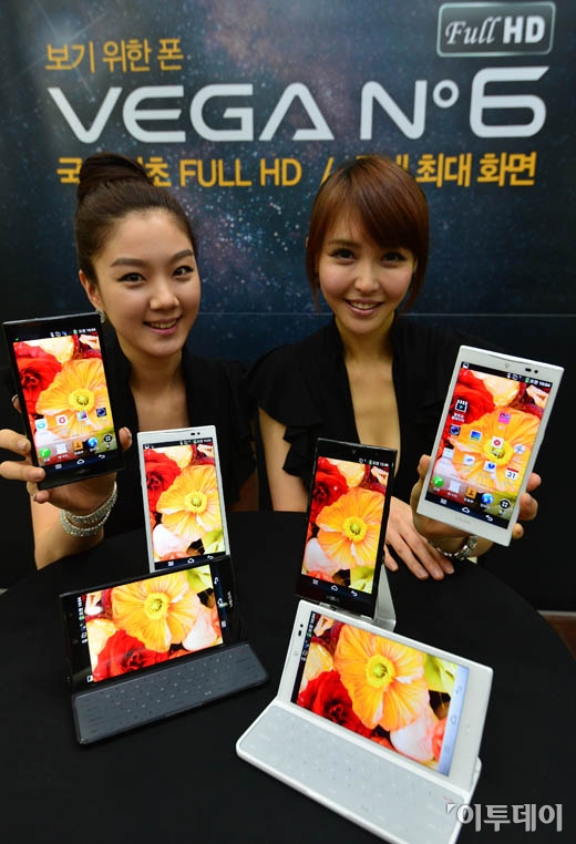 팬택이 28일 상암 본사에서 풀HD 롱텀에볼루션 스마트폰 '베가 넘버6'를 선보이고 있다. 베가 넘버6는 쿼드코어 애플리케이션 프로세서와‘내추럴IPS 프로’를 탑재했으며 풀HD 화질로 초당 30프레임(fps) 활영이 가능한 200만 화소의 카메라, 후면에는 1300만 화소의 카메라를 장착 한 것이 특징이다. 2월부터 이동통신 3사를 통해 판매 예정이며 출고 가격은 84만9000원이다.