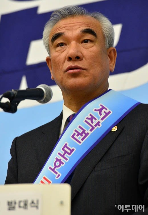 최광식 문화체육관광부 장관이 28일 서울 상암동 문화콘텐츠센터에서 '2013년 불법복제물 단속요원 발대식'에 참석해 축사하고 있다.