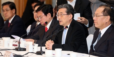 ▲이한구 새누리당 원내대표가 28일 오후 국회에서 열린 제18대 대통령직 인수위원회와 새누리당의 첫 연석회의에서 인사말을 하고 있다. (사진: 연합뉴스)