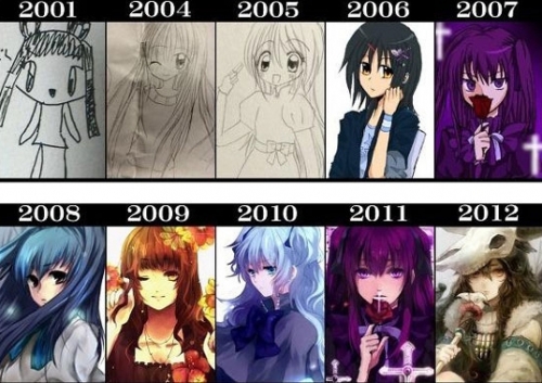 '10년 그림 공부'라는 제목으로 공개된 이 게시물에는 2001년부터 2012년까지 그렸던 대표적인 그림들이 담겨 있다.