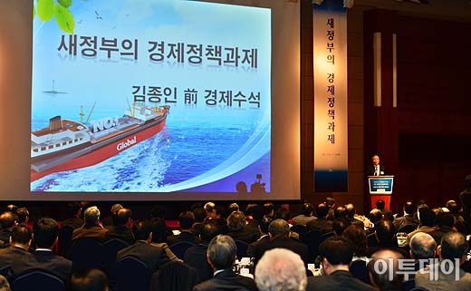 김종인 前 새누리당 국민행복추진위원장이 29일 오전 서울 강남구 삼성동 그랜드 인터콘티넨탈호텔에서 한국무역협회 주최로 열린 ‘제 71회 KITA 최고경영자 조찬회’에서 ‘새 정부의 경제정책 과제’란 주제로 강연하고 있다.
