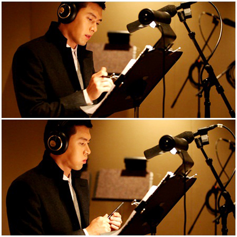 현빈 녹음실 포착 사진 속 현빈은 내레이션 도중 볼에 바람을 불어 넣는가 하면 연필로 연기할 내용을 체크하는 등 집중하는 모습을 보였다.